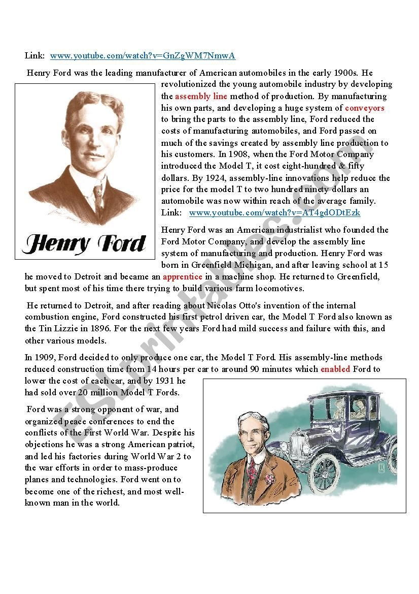Henry Ford ESL Worksheet By Advokat1794