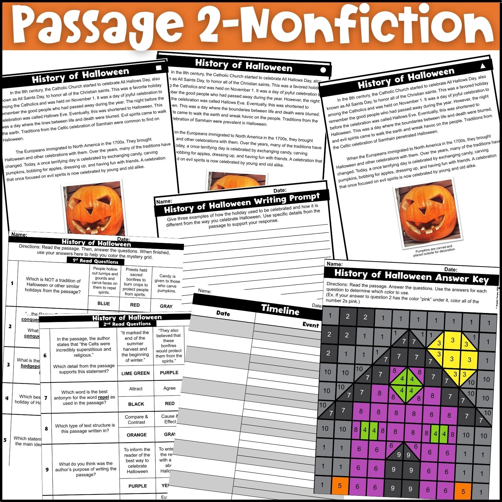 Halloween Reading Comprehension Passages With Mystery Picture Activity Fun In 5th Grade U0026 MORE
