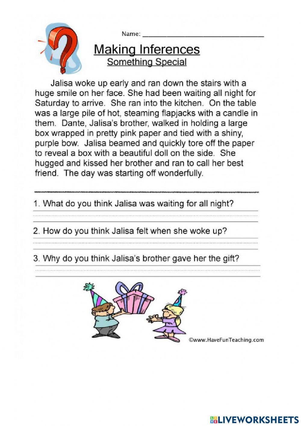 Language Arts Reading Comprehension Making Inferences Online Worksheets Library