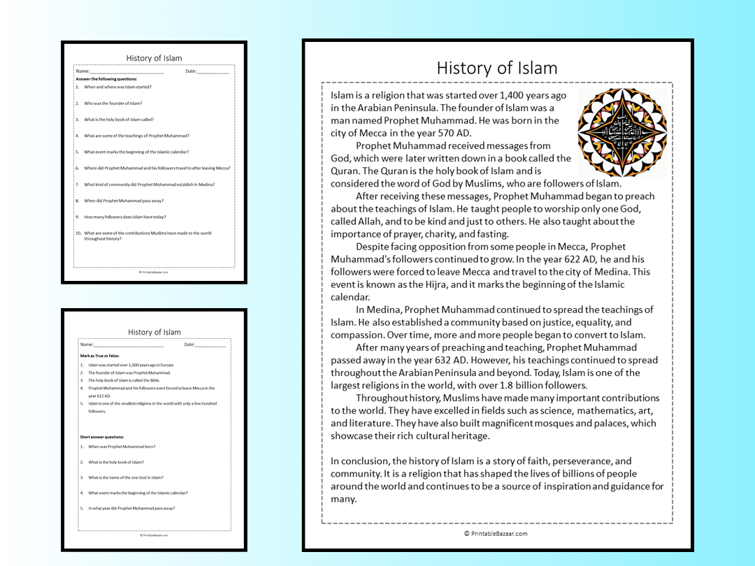Reading comprehension worksheets not only help you learn more about Islam but also improve your critical thinking and analytical skills. By engaging with the material and answering questions, you can deepen your understanding and appreciation of the rich history and teachings of Islam.