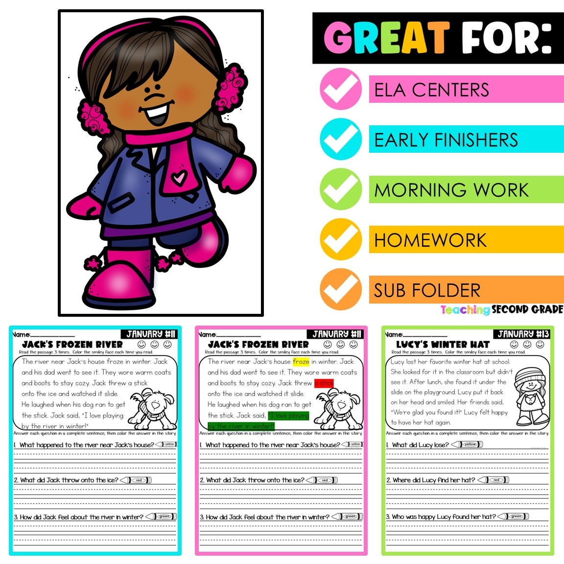 January Reading Passages 1st Grade Comprehension Question Answers Text Evidence Teaching Second Grade