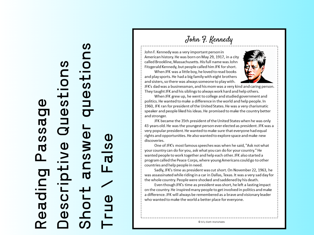 Are you looking for fun and educational ways to improve reading comprehension skills? Look no further than John F Kennedy reading comprehension worksheets! These worksheets are a great way to engage students and help them develop their reading skills while learning about an important historical figure.