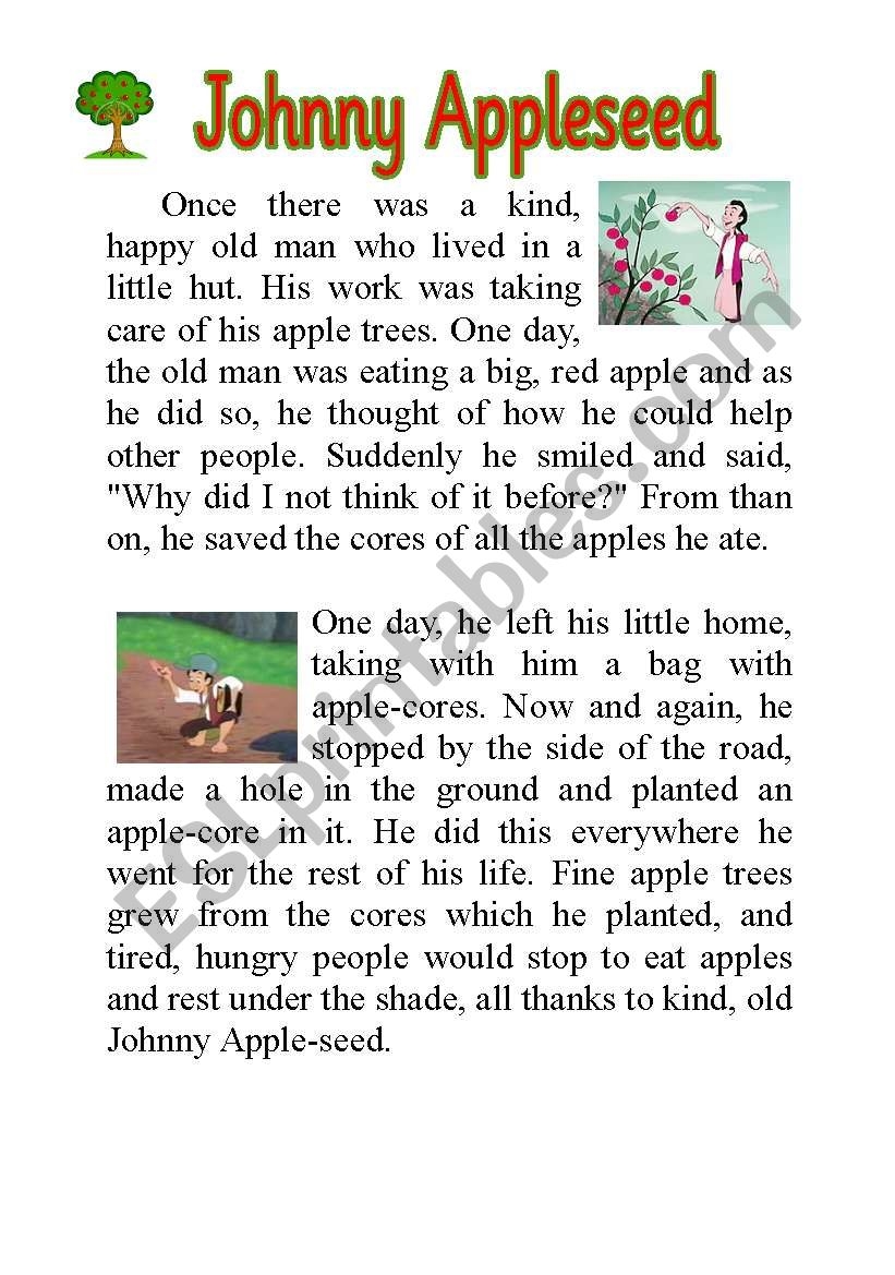 Johnny Appleseed Story ESL Worksheet By Loveheart