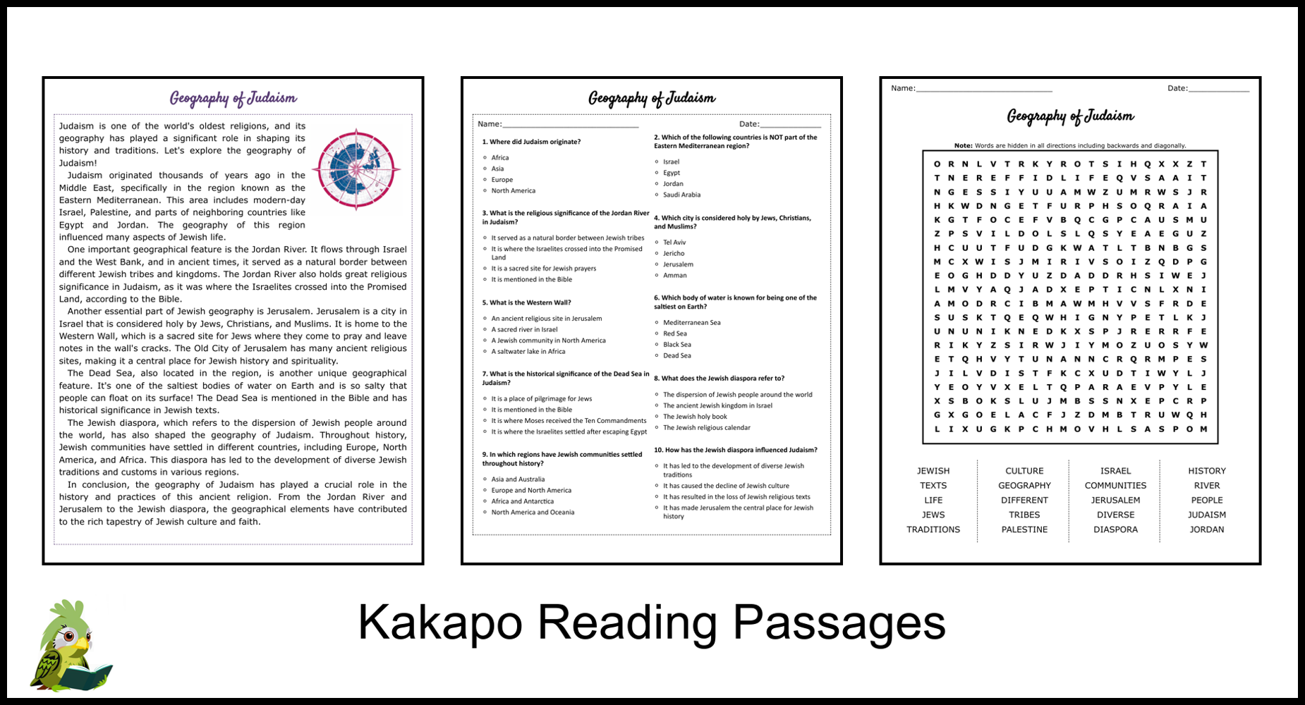 Geography Of Judaism Reading Comprehension And Word Search Teaching Resources