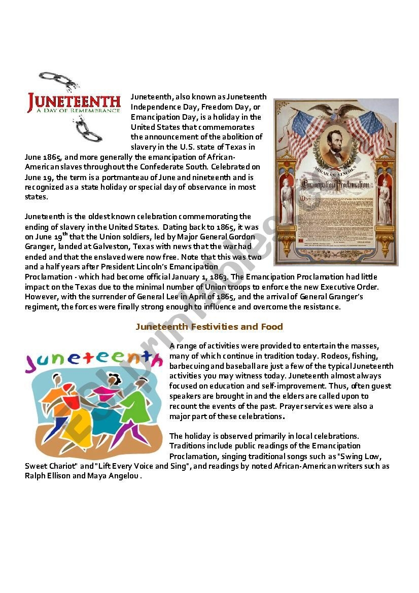 Juneteenth Reading Comprehension Worksheet: A Valuable Educational Tool