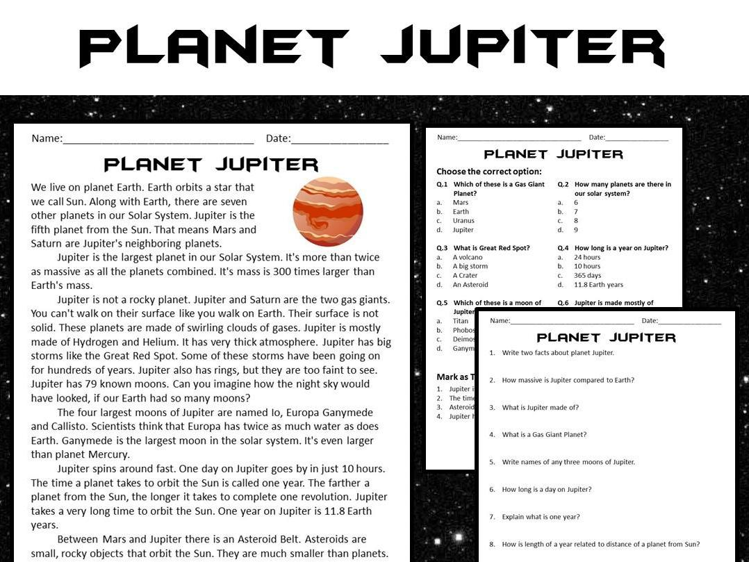 Planet Jupiter Reading Comprehension Passage Printable Worksheet Teaching Resources