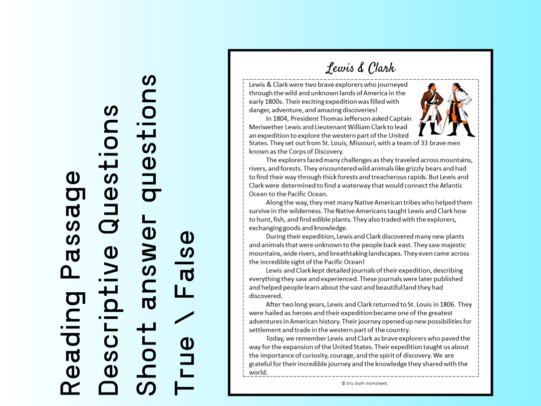 Lewis And Clark Expedition Reading Comprehension Passage Printable Worksheet Teaching Resources