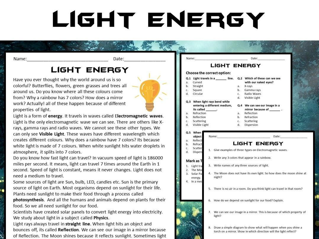 Light Energy Reading Comprehension Passage And Questions PDF Teaching Resources