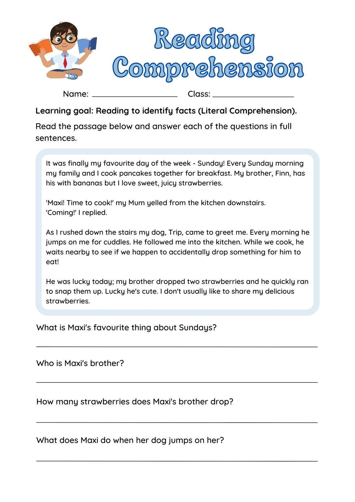 Literal Reading Comprehension Worksheets