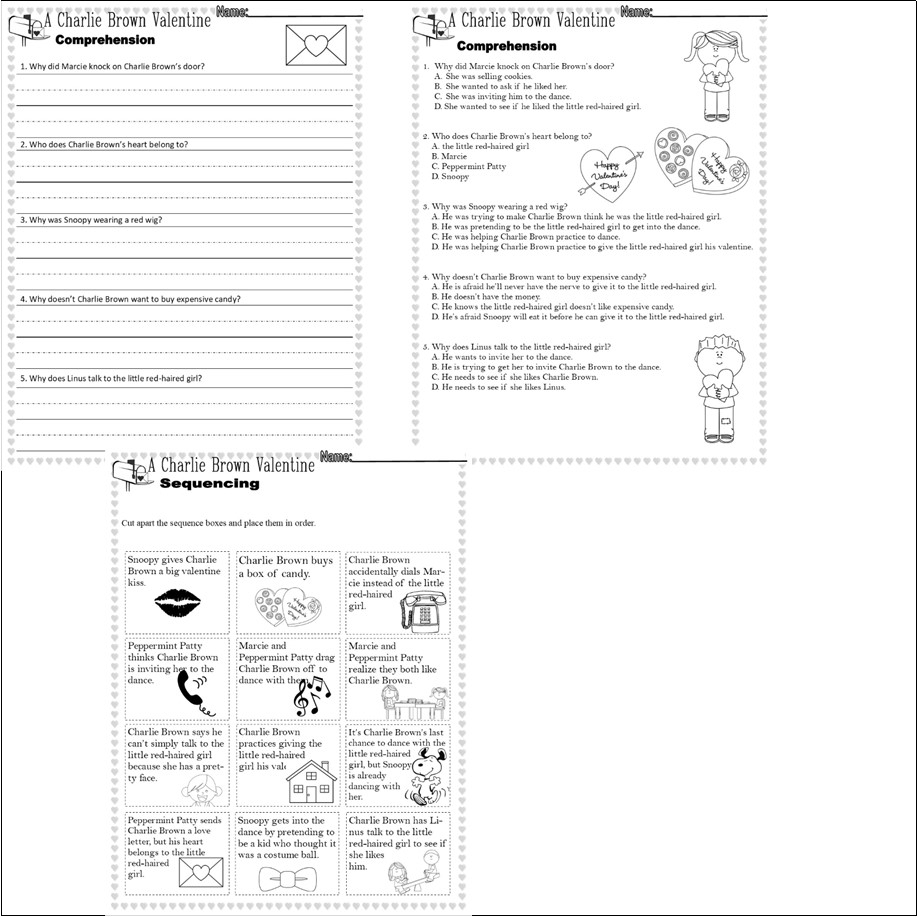 A Charlie Brown Valentine Reading Quiz Tests U0026 Story Scene Sequencing Made By Teachers