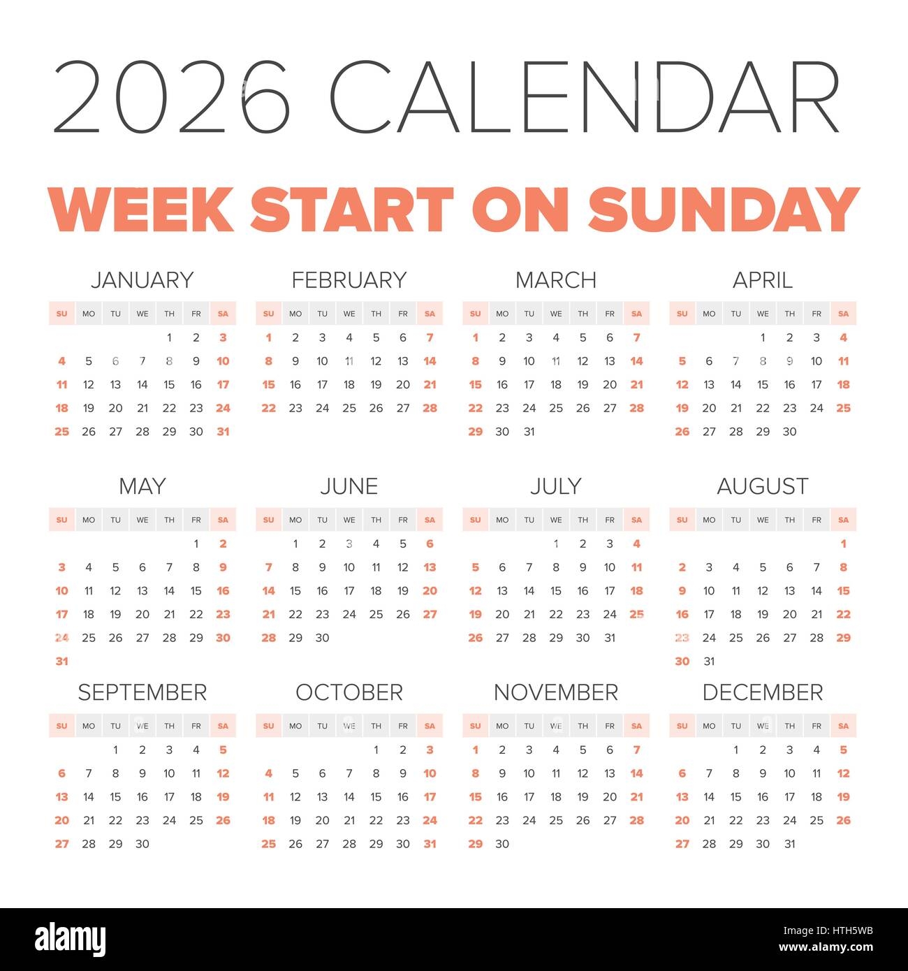 Simple 2026 Year Calendar Week Starts On Monday Stock Vector Image U0026 Art Alamy