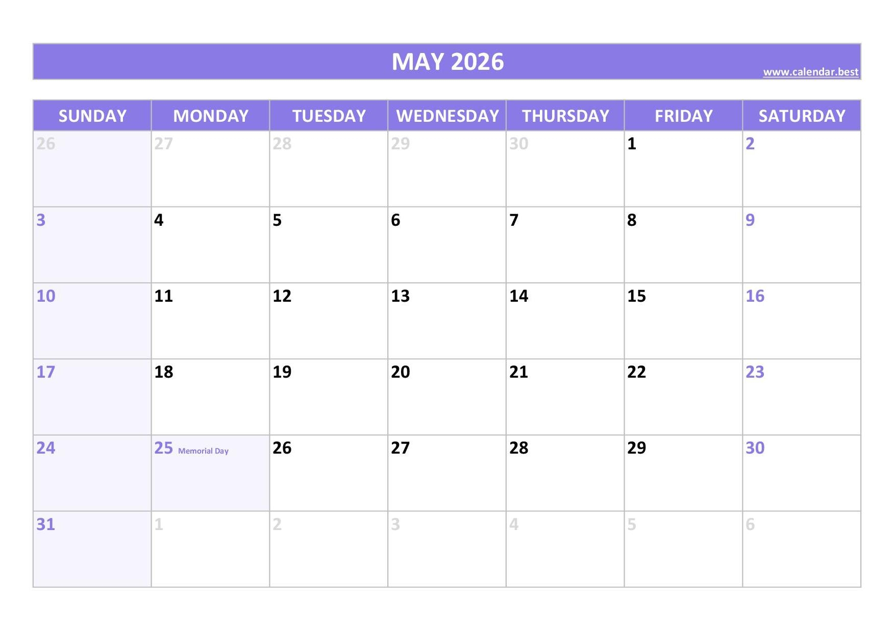 With the May calendar 2026 with holidays, you can easily see when you have time off work or school. From Memorial Day to Mother’s Day, there are plenty of opportunities to relax and spend time with loved ones. Make sure to mark your calendar with all the important dates!