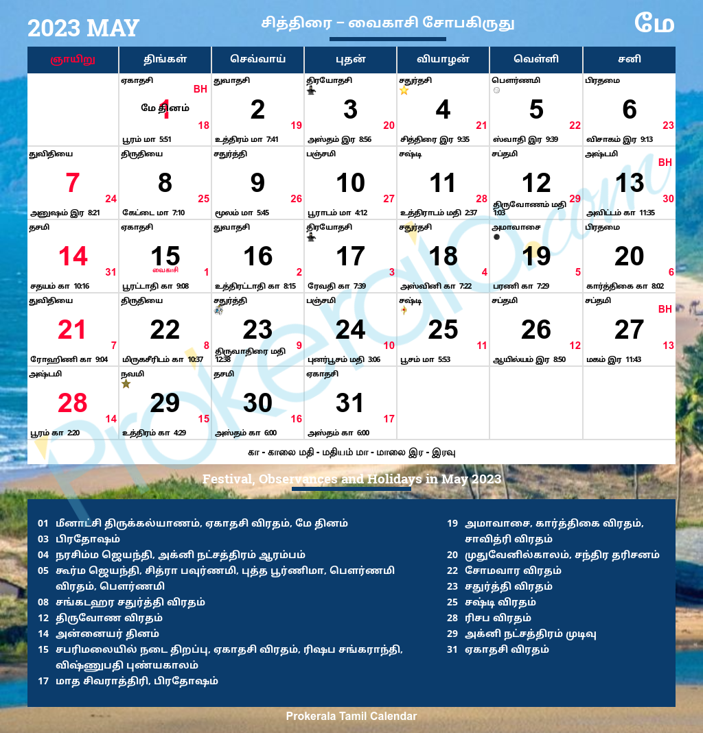 Additionally, the month of May is filled with various religious and cultural events, such as Akshaya Tritiya and Buddha Purnima. These festivals hold great importance in the Tamil community and are observed with enthusiasm and joy.