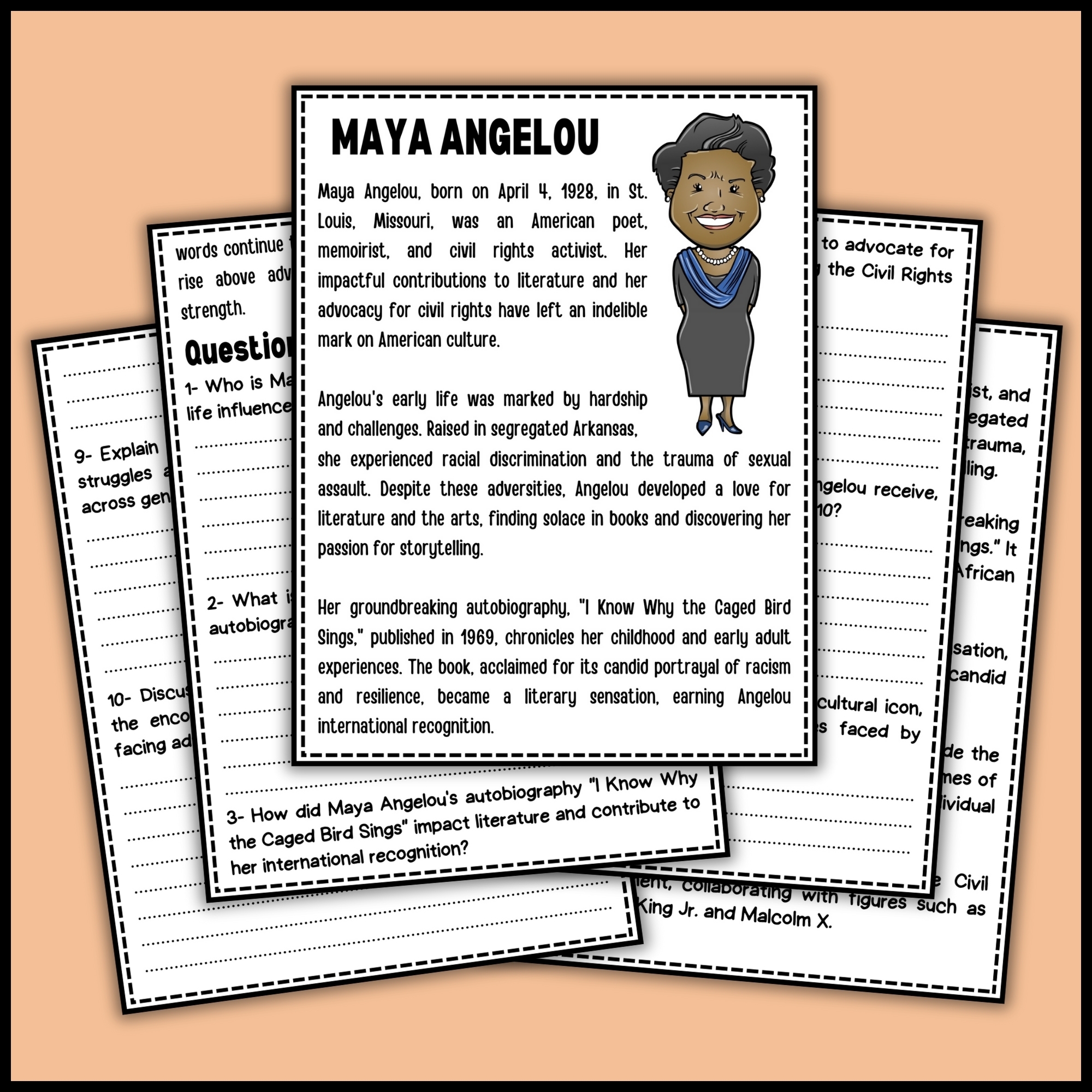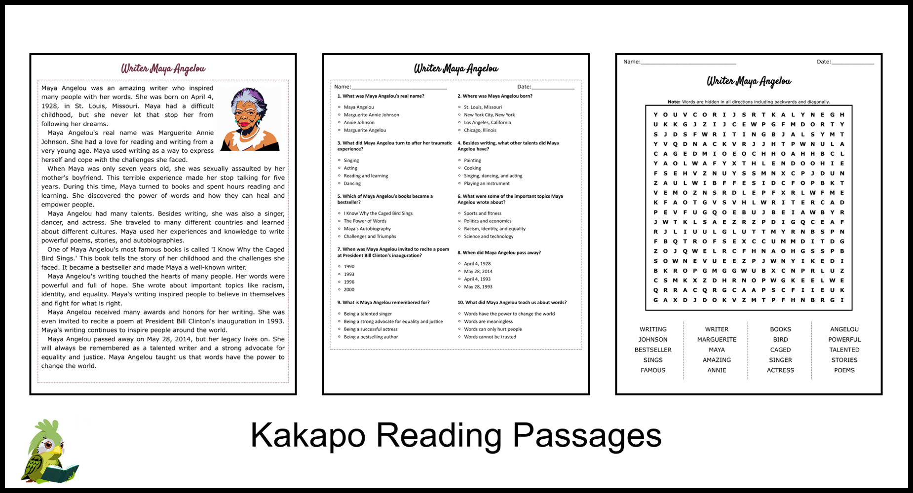 So why wait? Dive into the world of Maya Angelou with this engaging worksheet and watch as your reading comprehension skills soar to new heights!