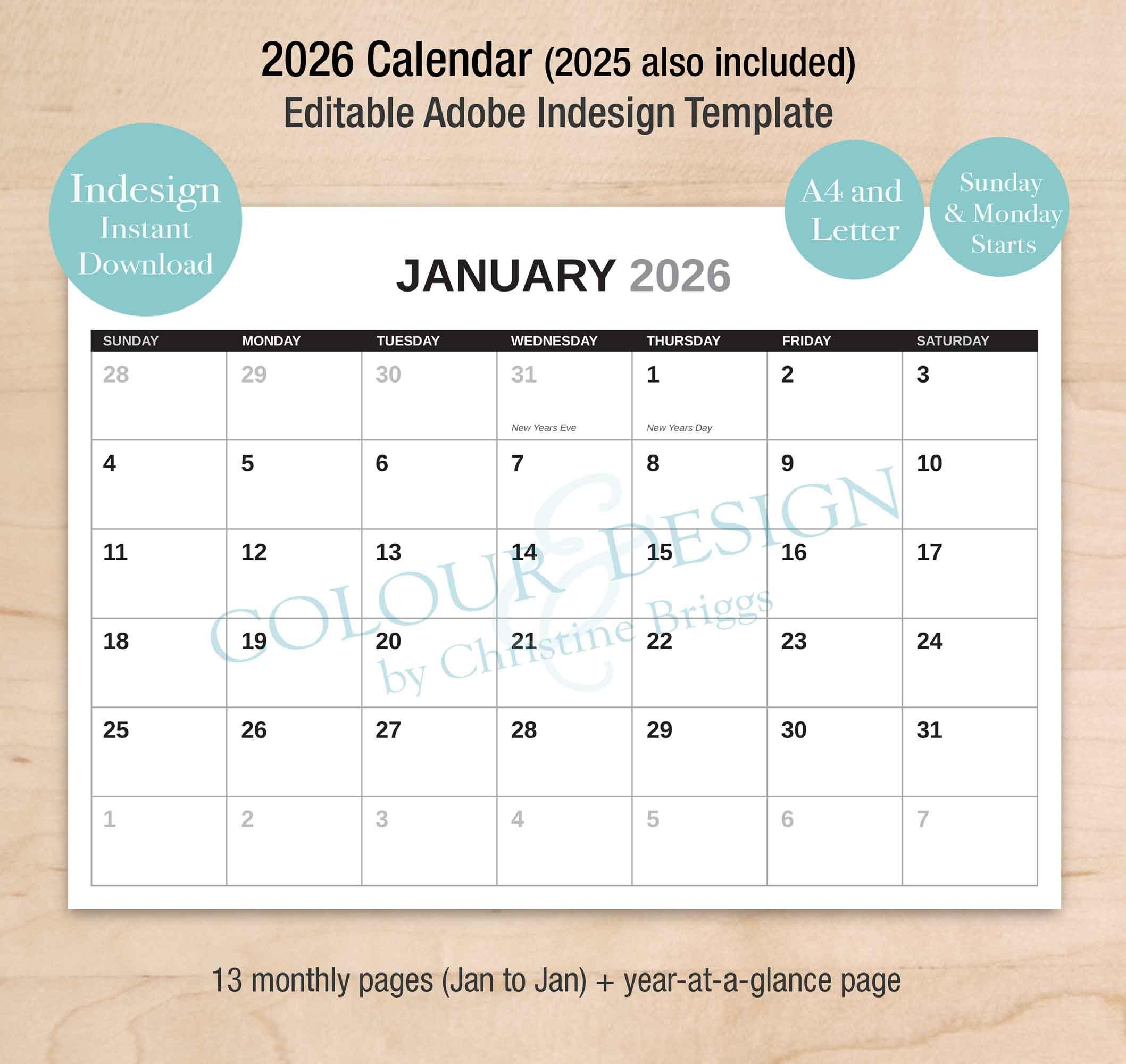 13 Month Calendar Etsy