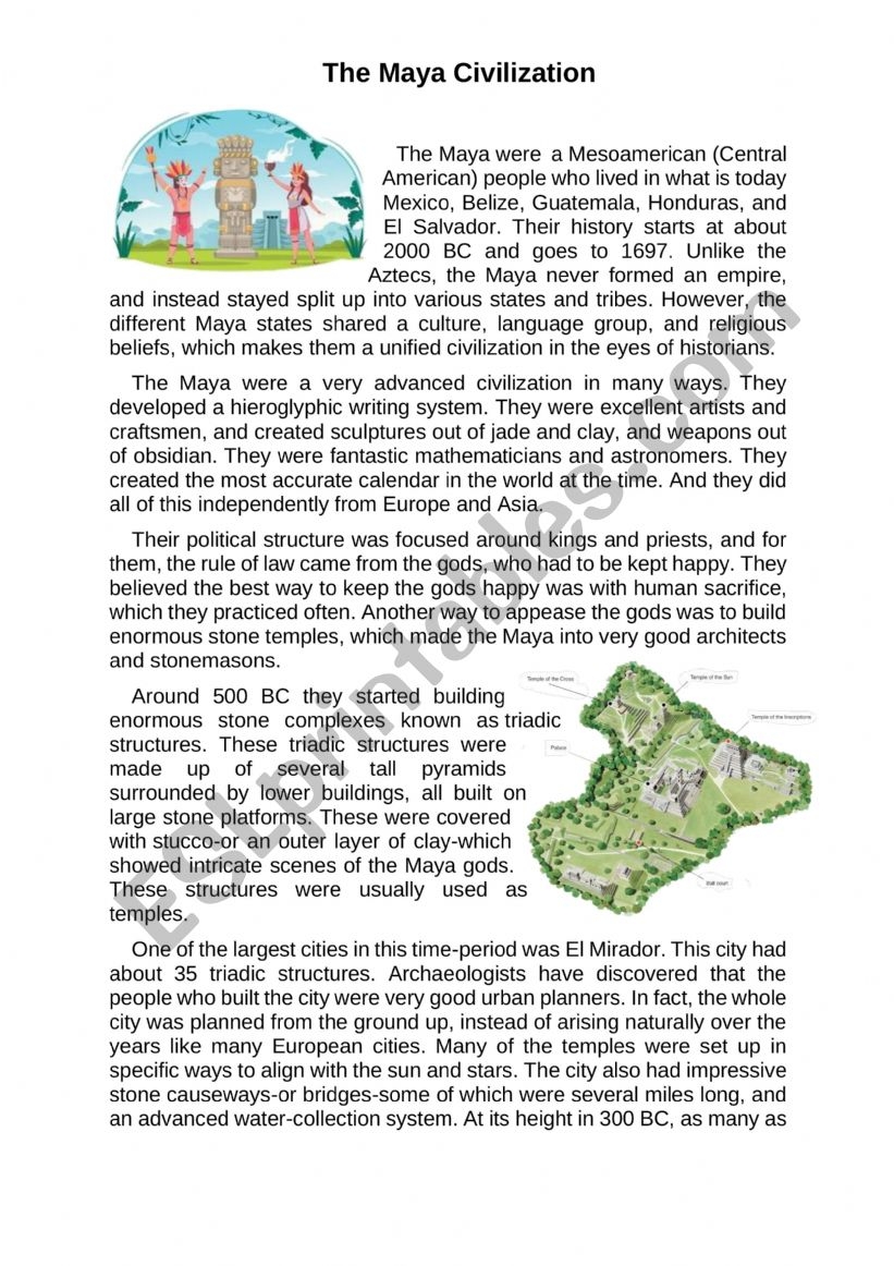 The Maya Civilisation Reading Comprehension Worksheet ESL Worksheet By Kosh