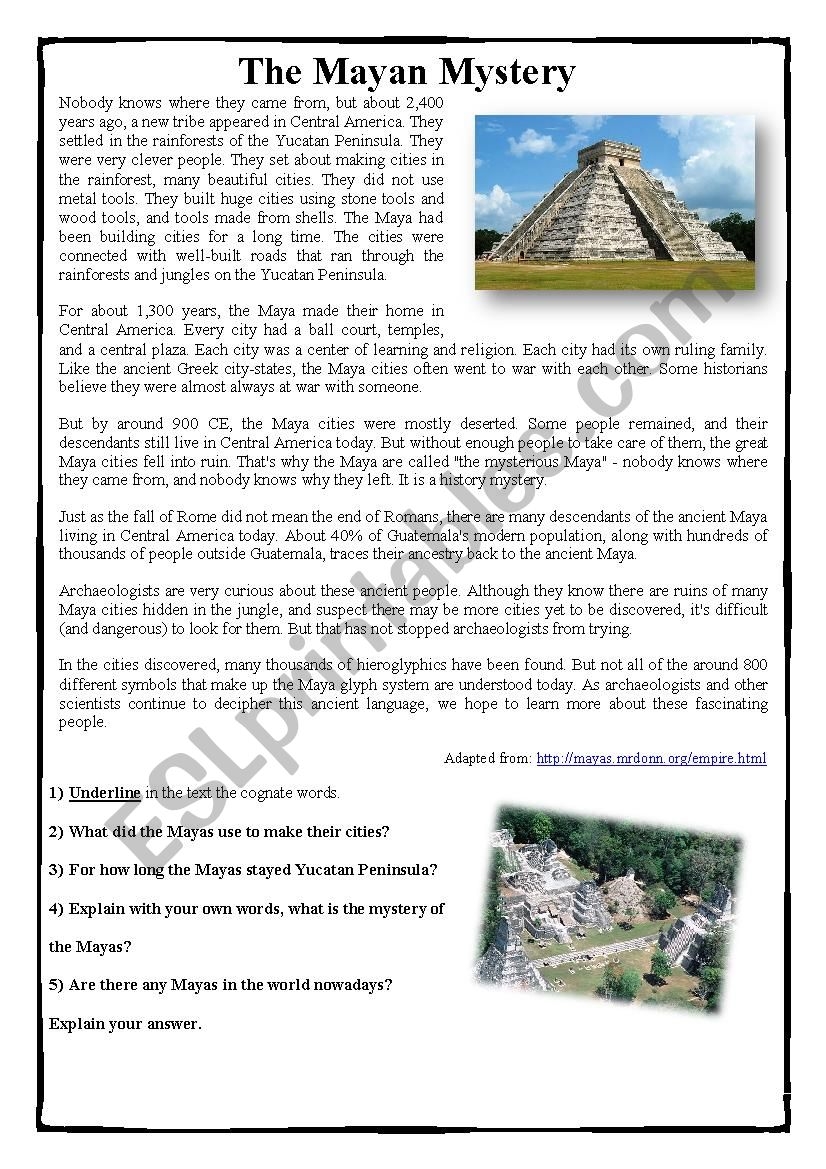 The Mayan Mystery Reading ESL Worksheet By Dany faryas86