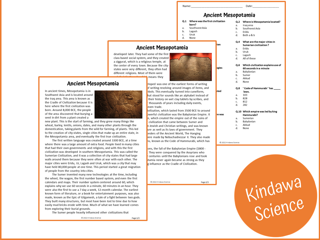 Ancient Mesopotamia Reading Comprehension Passage And Questions PDF Teaching Resources