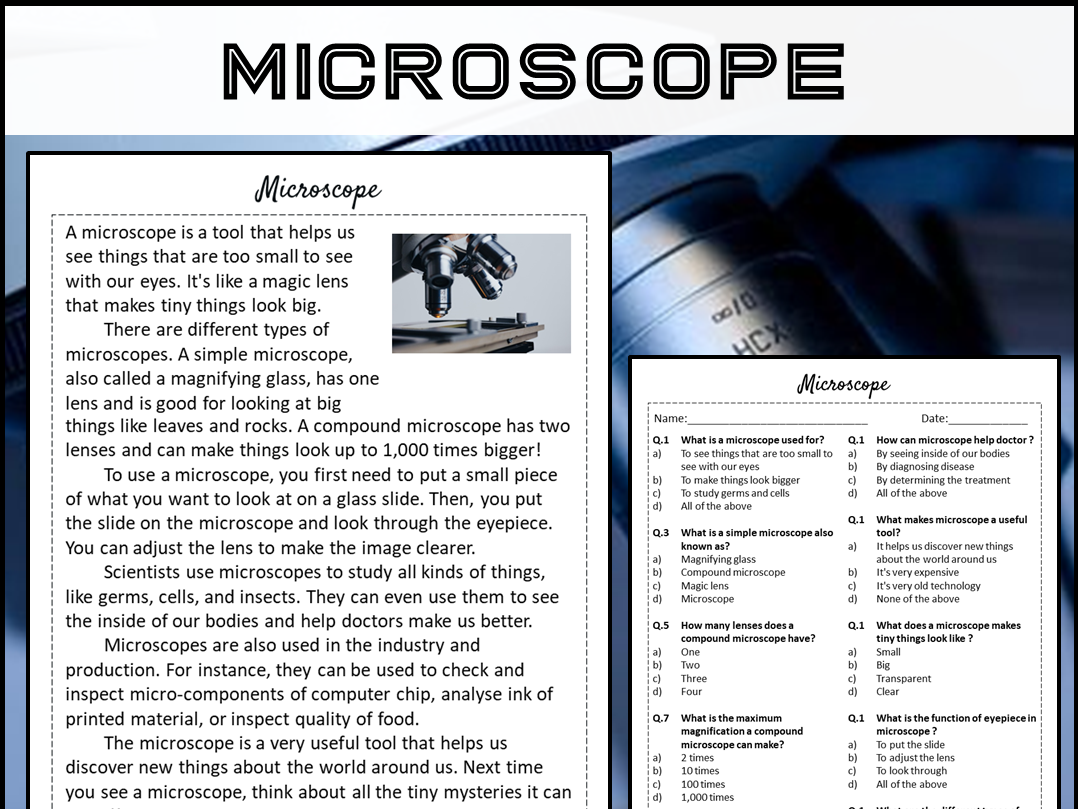 Unleash Your Reading Potential with Microscope Reading Comprehension Worksheet
