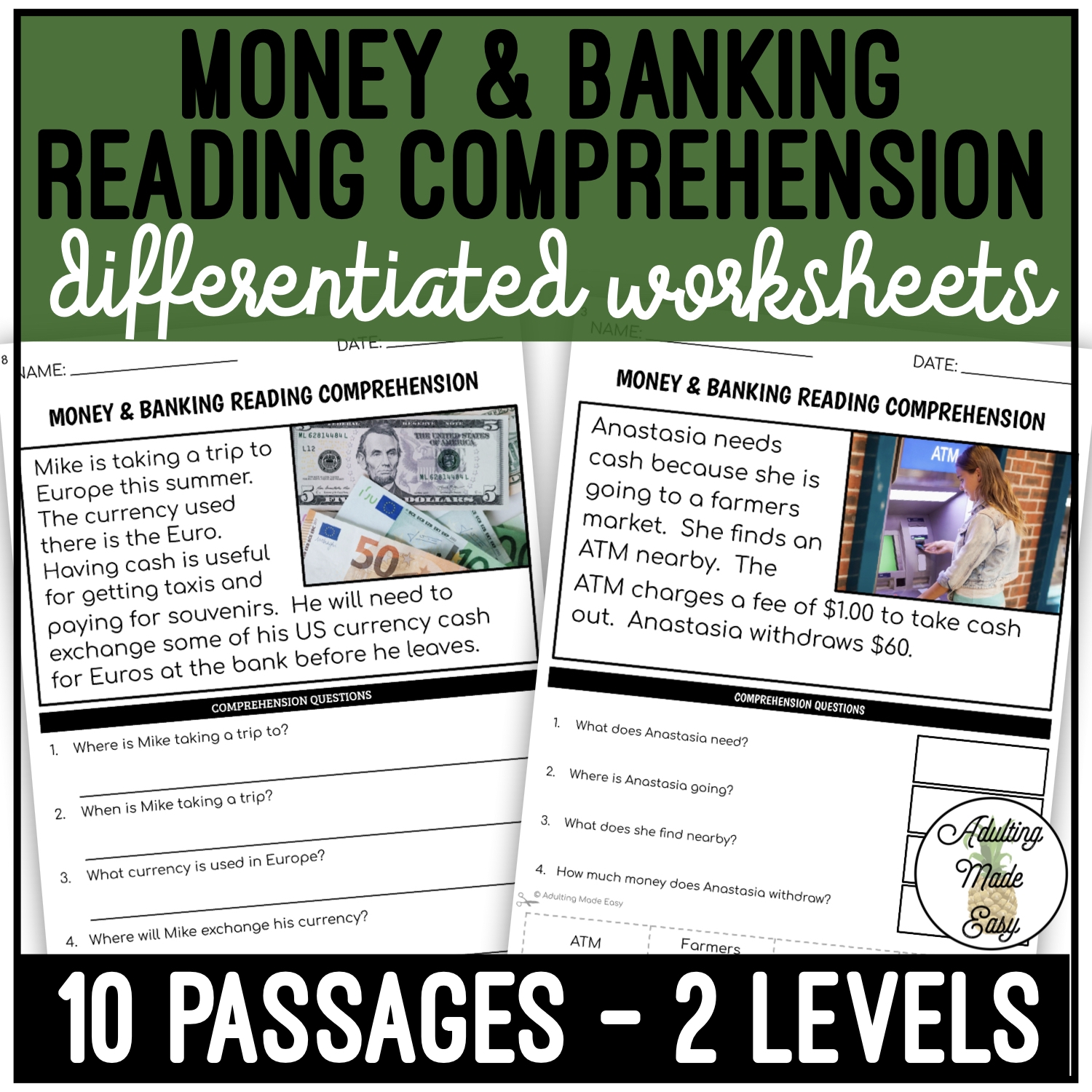 Money U0026 Banking Simplified Reading Comprehension Worksheets