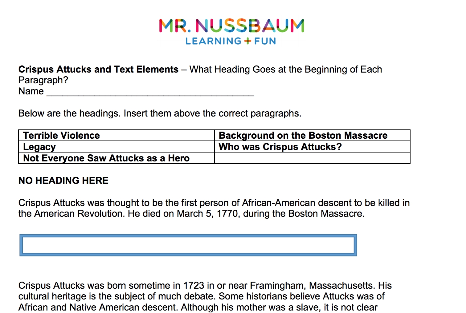 Mr Nussbaum Reading Comprehension Worksheets