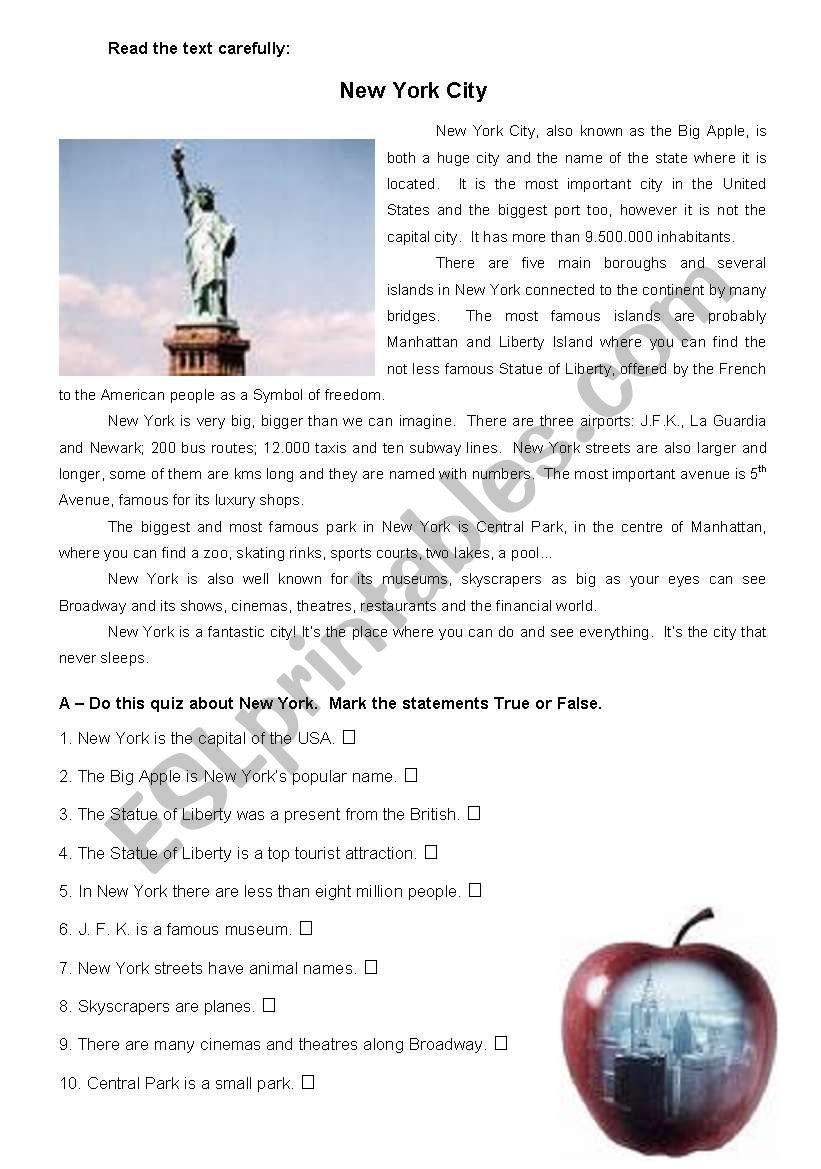 New York City Reading Comprehension ESL Worksheet By Simpson parker