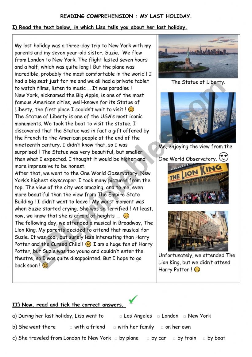 Reading My Last Holiday In New York City ESL Worksheet By Mperfetto