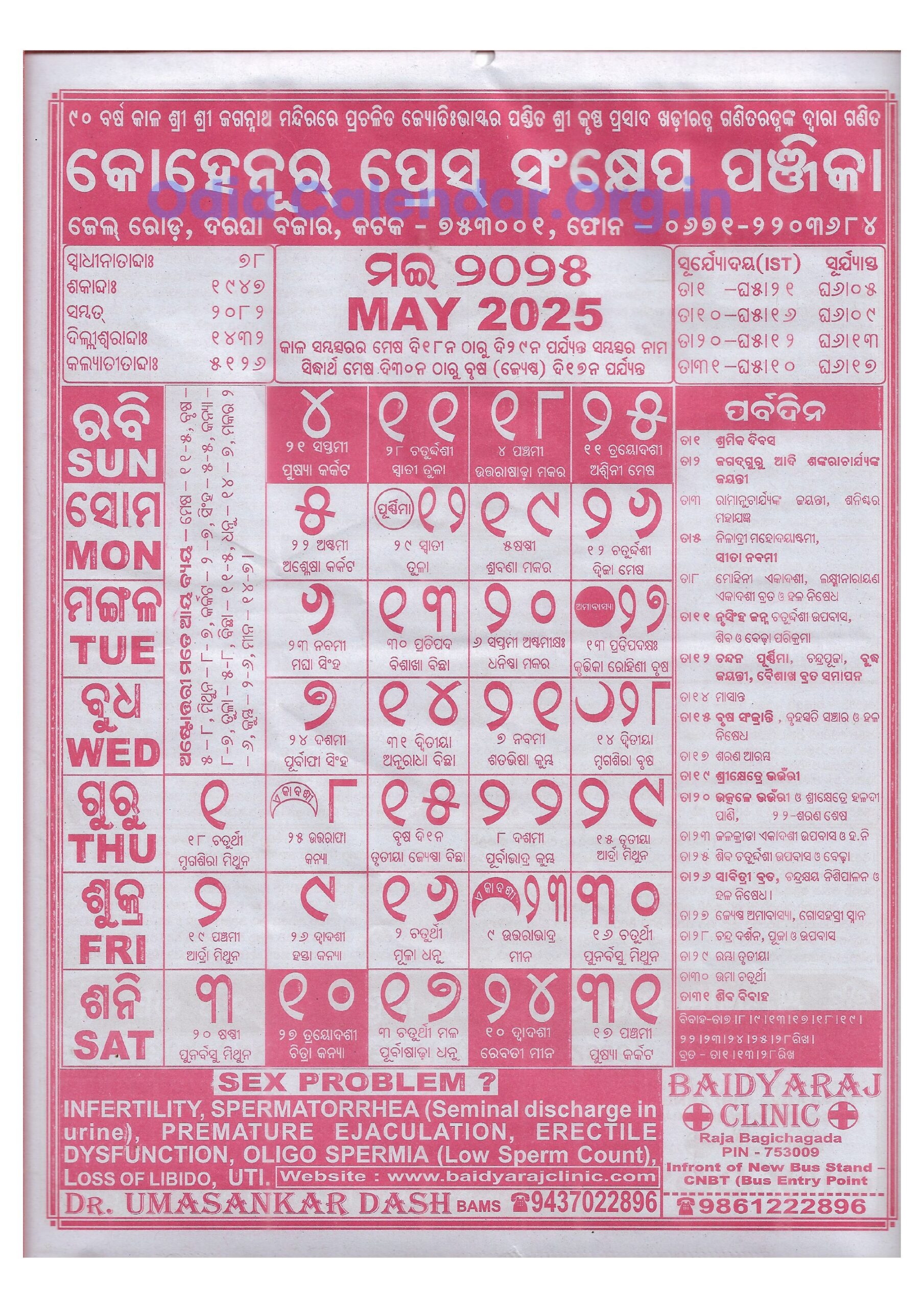 Odia Calendar 2025 May Kohinoor Panji PDF Download