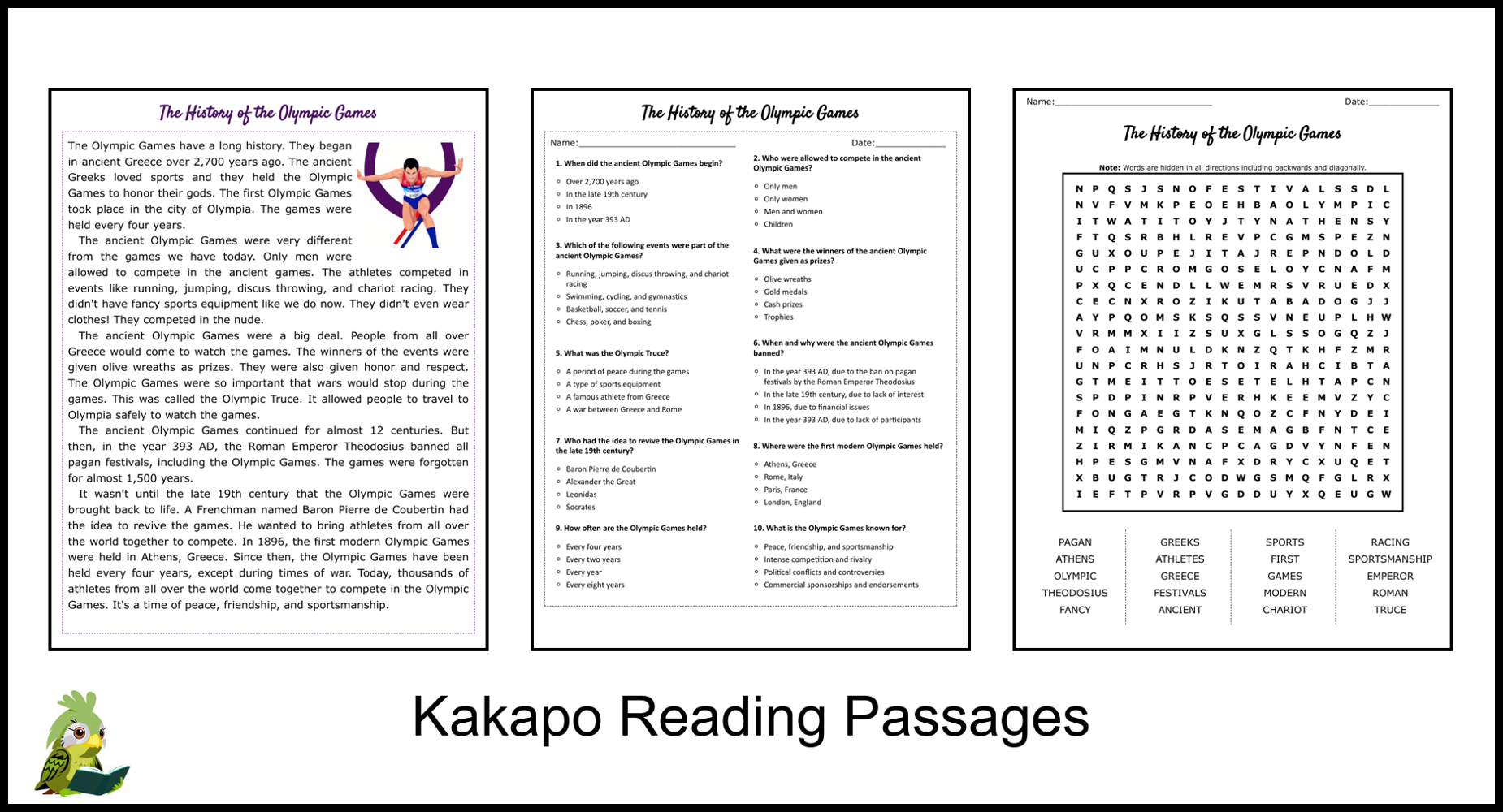 History Of The Olympic Games Reading Comprehension Passages The Little Ladybug Shop