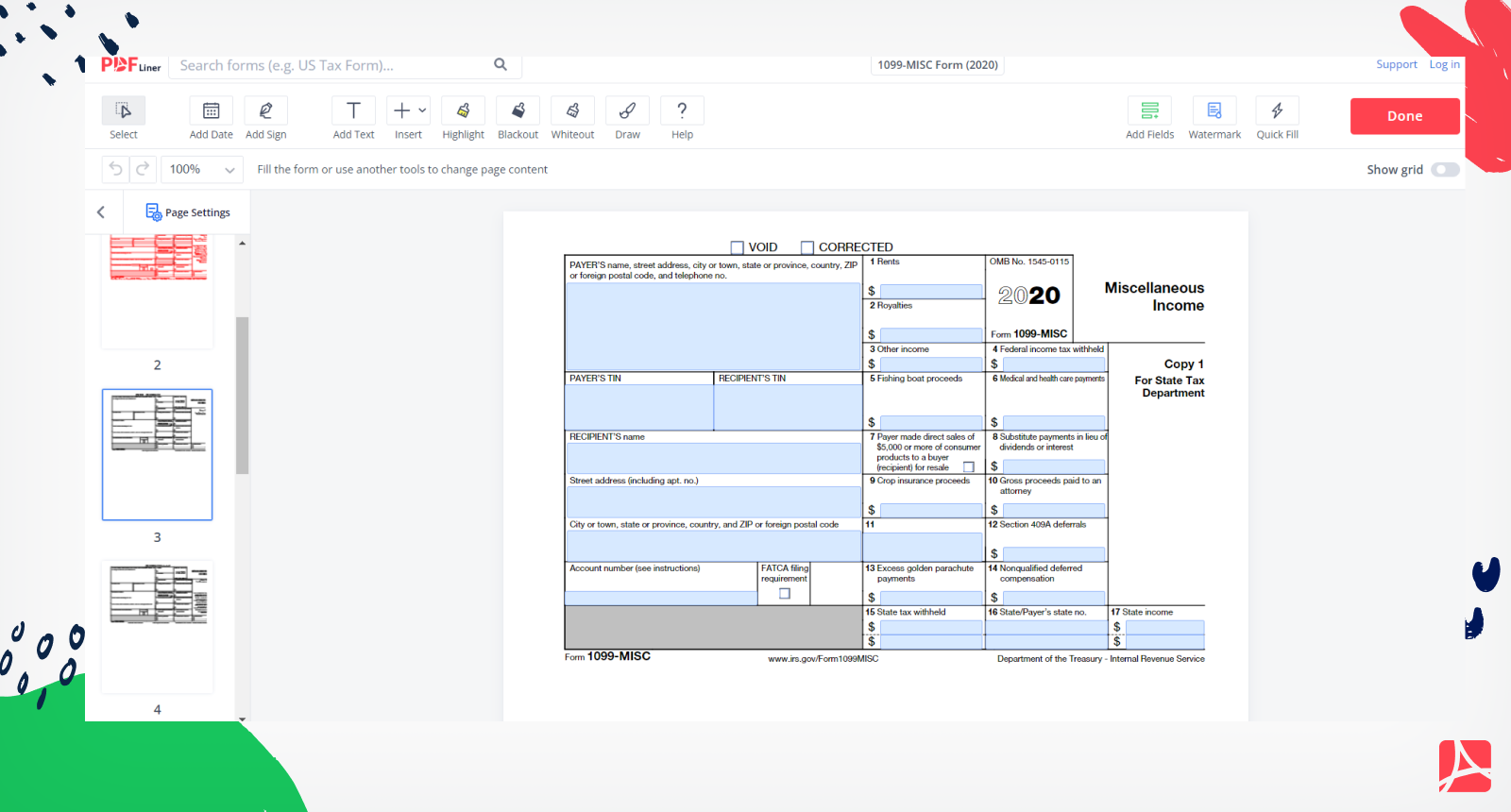 1099 MISC Form 2020 Printable Blank Form Online PDFliner