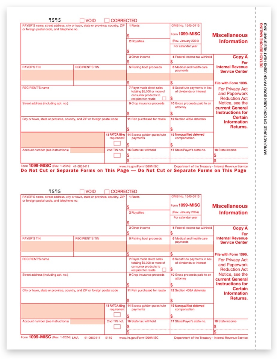 1099 MISC Forms 2024 4 Part Tax Forms Kit 25 Vendor Kit Of Laser Forms Compatible With QuickBooks And Accounting Software 25 Self Seal Envelopes