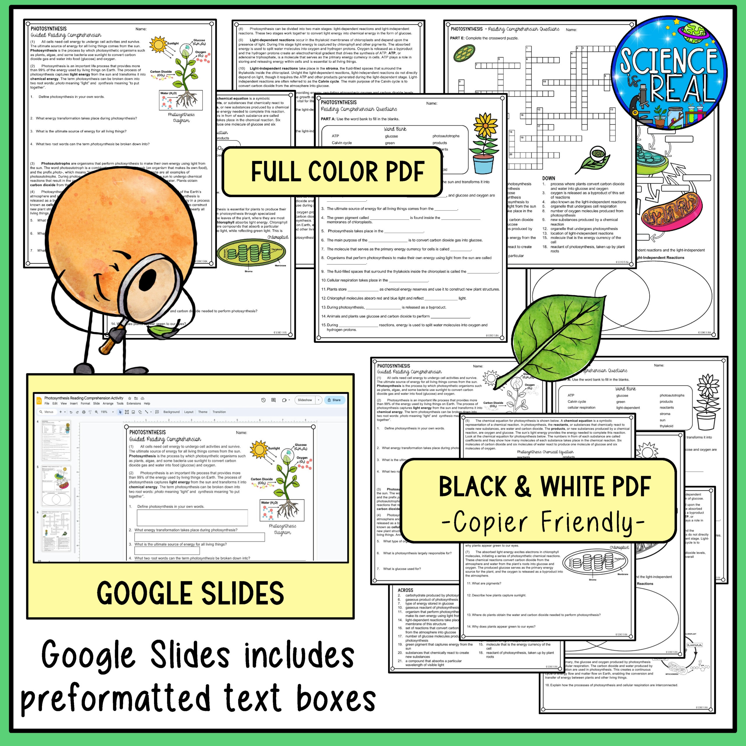 Photosynthesis Reading Comprehension Passage And Questions PDF Teaching Resources