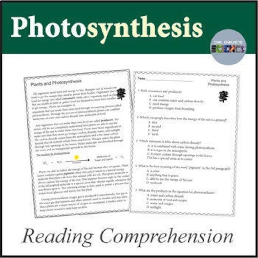 Photosynthesis Reading Comprehension Worksheet Pdf