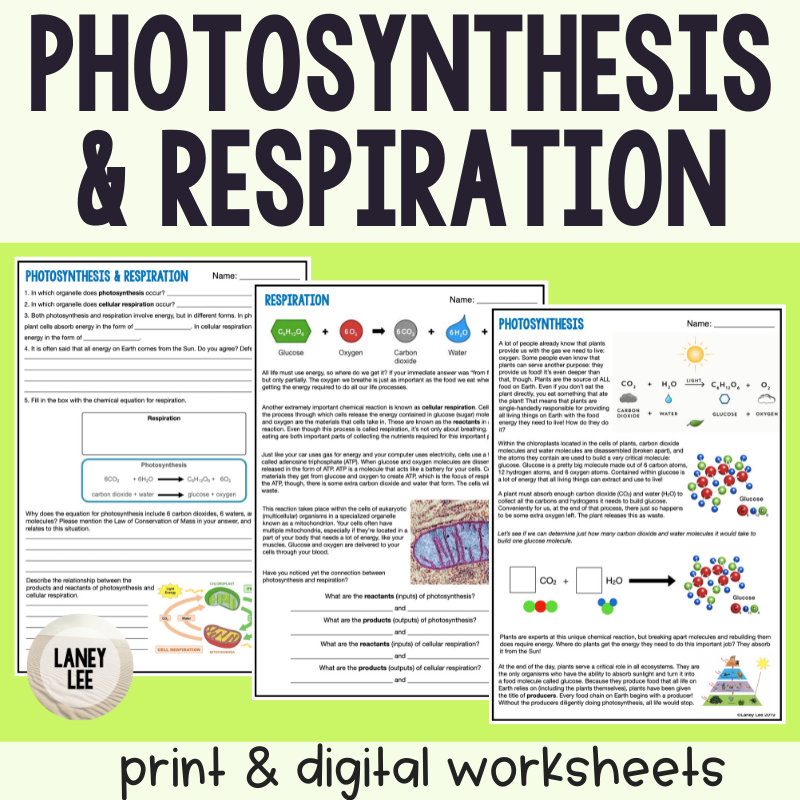 Photosynthesis U0026 Respiration Reading Comprehension Worksheets