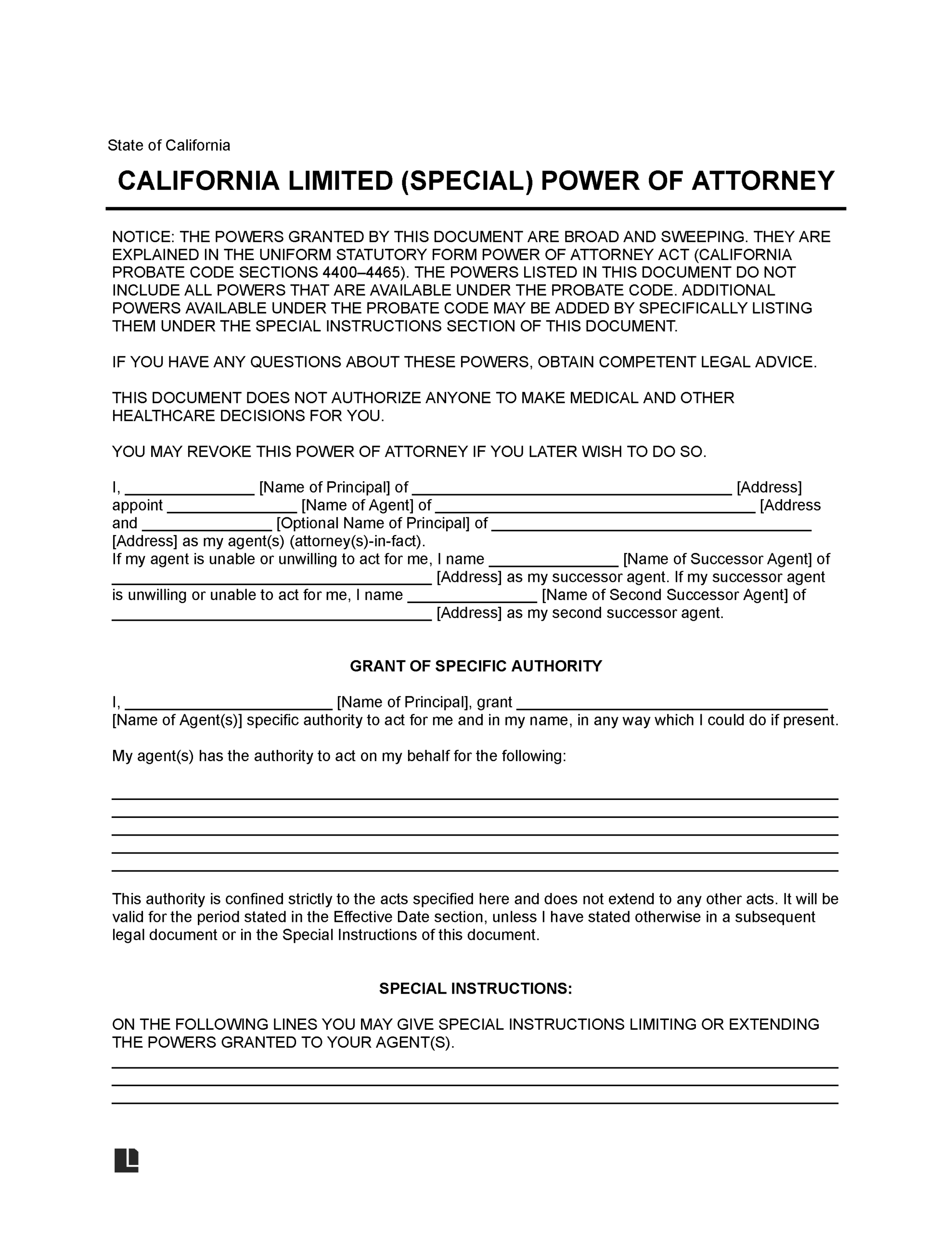 California Power Of Attorney Templates Free Word PDF U0026 ODT