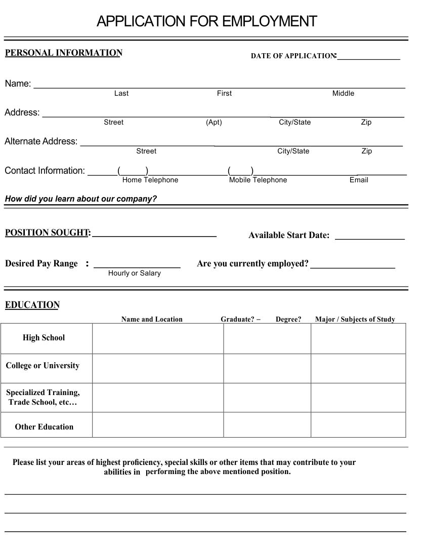 Blank Application For Employment 10 Free PDF Printables Printablee Worksheets Library