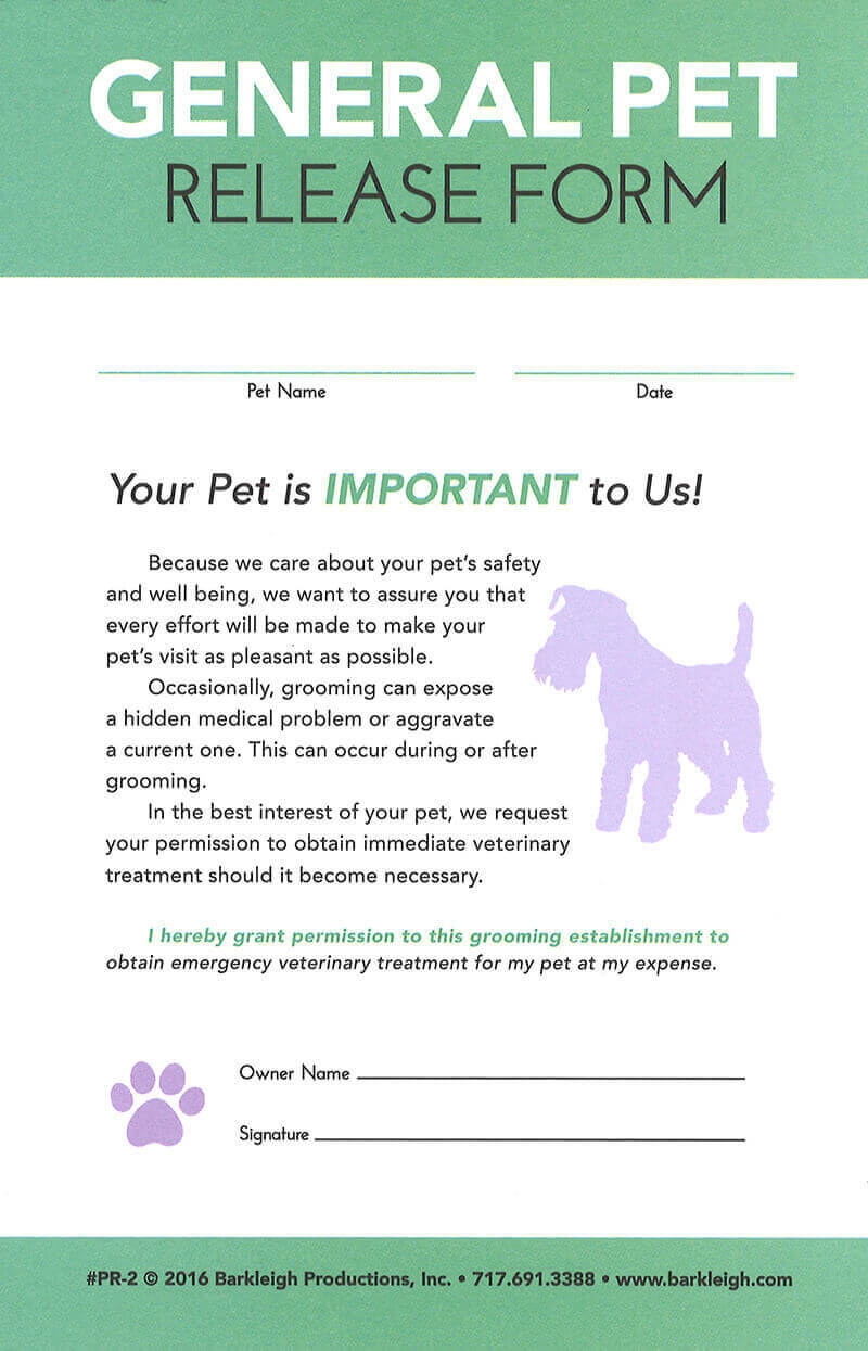 Pet Grooming Intake Forms Consent U0026 Release Matted Coat Clip Off Agreement Pet Report Card 50 Pk 25 Of Each Dbl Sided 8 5×11 Groomer