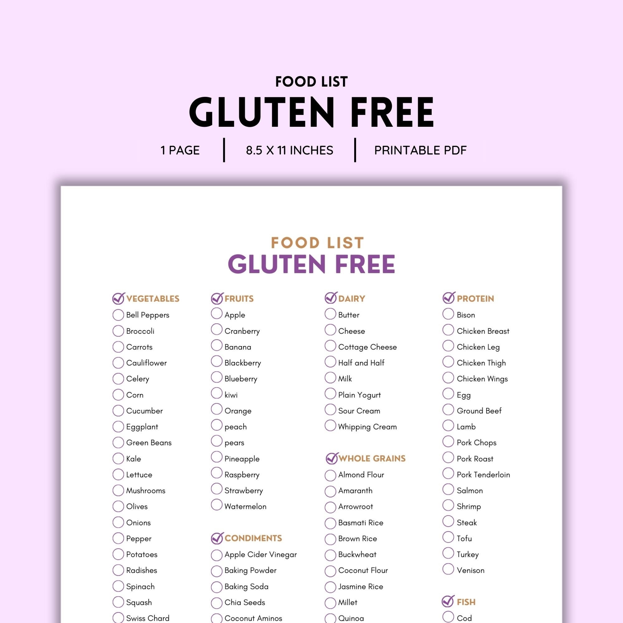 Gluten Free Food List Gluten Free Products Gluten Allergy Gluten Intolerance Food Allergy Gluten Sensitivity Shopping List PDF File Etsy