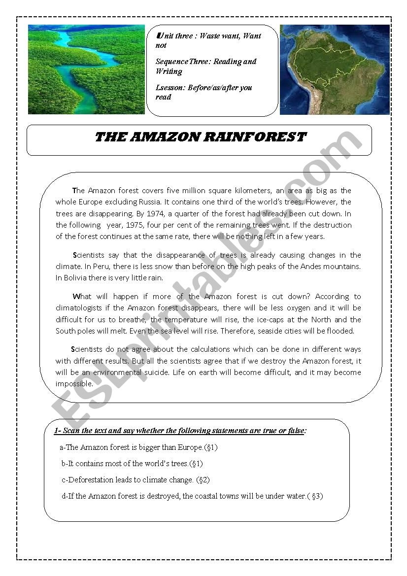 The Amazon Rainforest Reading Comprehension English Worksheet For Class 5 Brainiac Worksheets