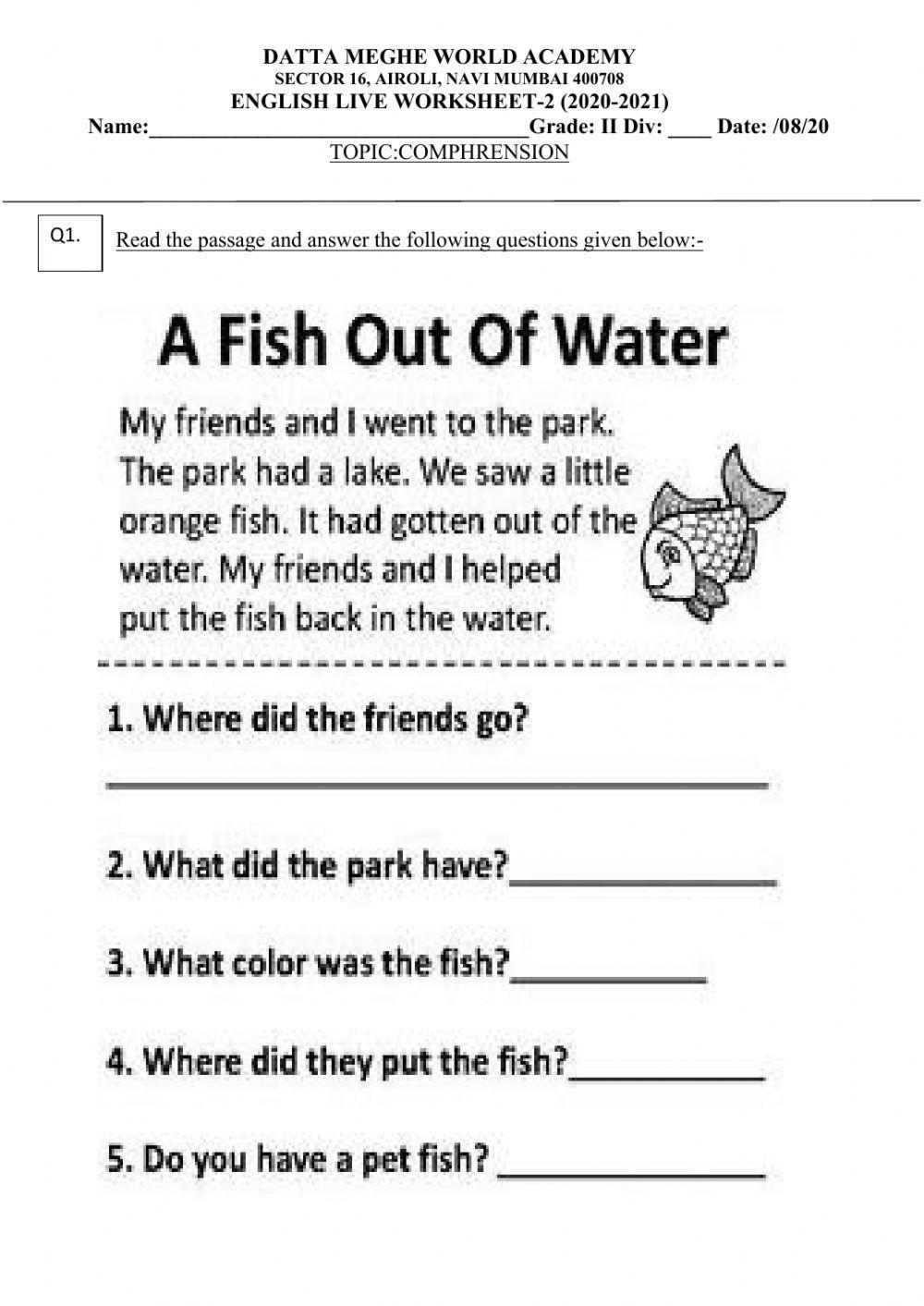 Reading Comprehension Live Worksheets Grade 2