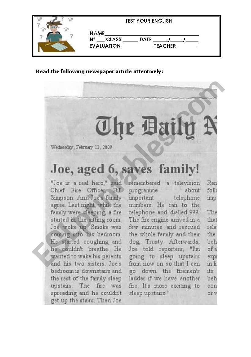 Newspaper Articles Reading Comprehension Activity ESL Worksheet By G raldine N