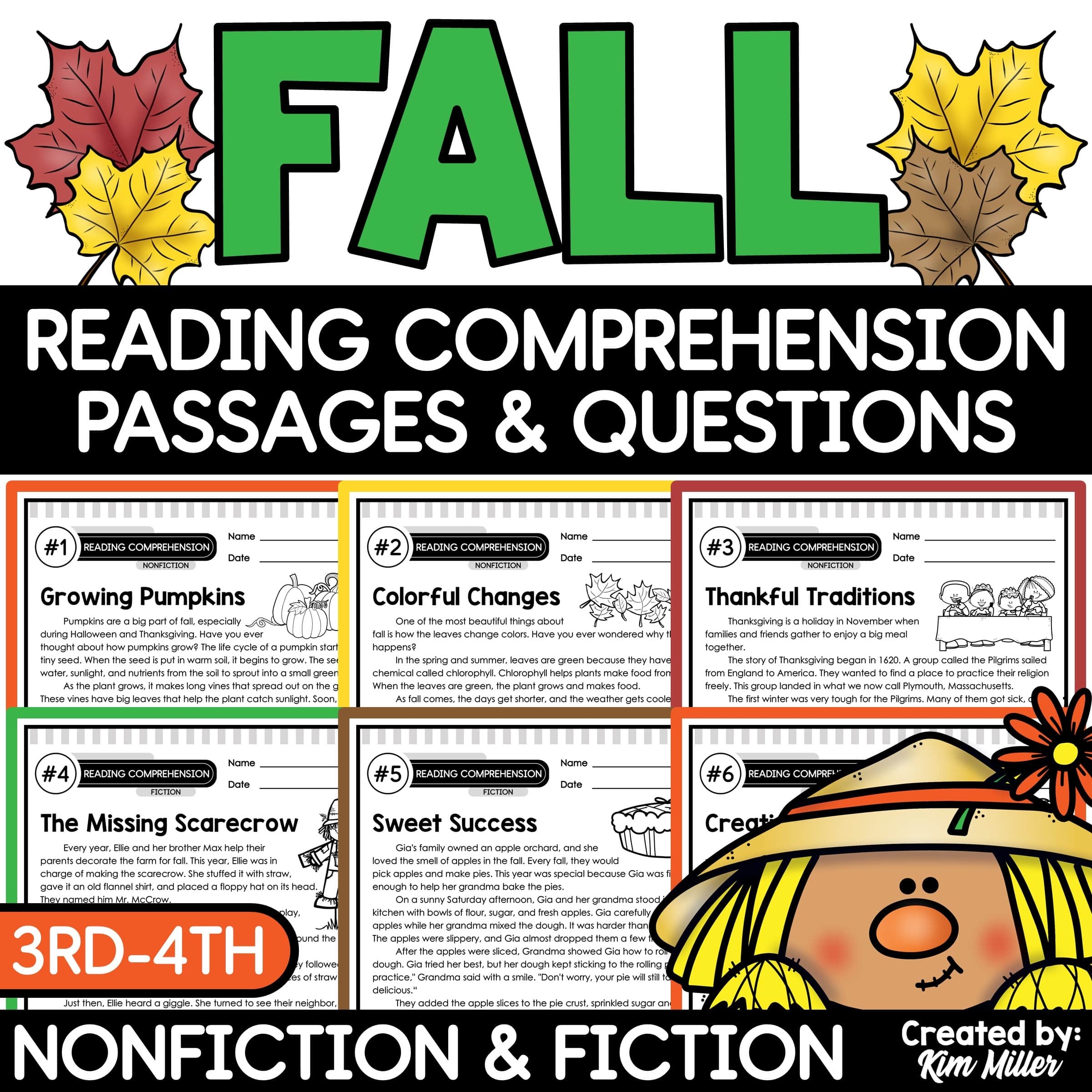 Fall Activities Reading Comprehension Passages And Questions 3rd 4th Grade