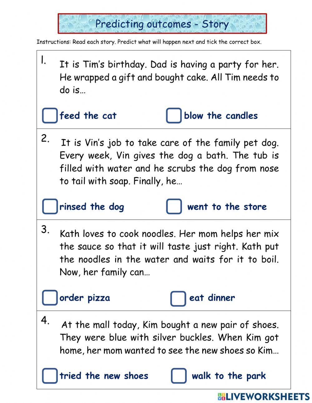 Predicting Outcomes Story Worksheet Live Worksheets Worksheets Library