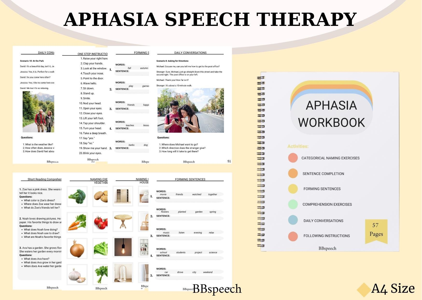 Aphasia Therapy Workbook 57 Pages Of Comprehension Categorical Naming Sentence Completion Forming Sentences Comprehension Exercises And More