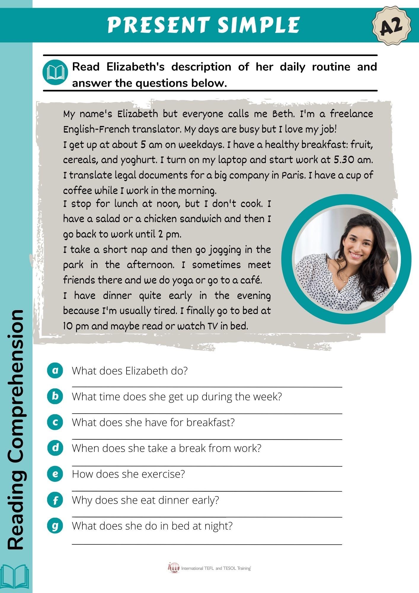Reading Comprehension Simple Present Worksheet