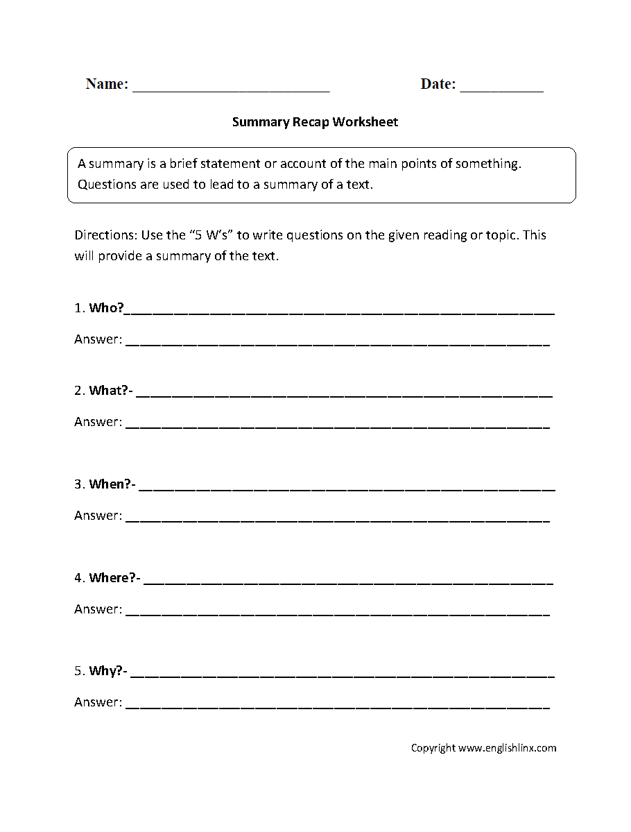 Summarizing Worksheets U0026 Activities Reading Comprehension