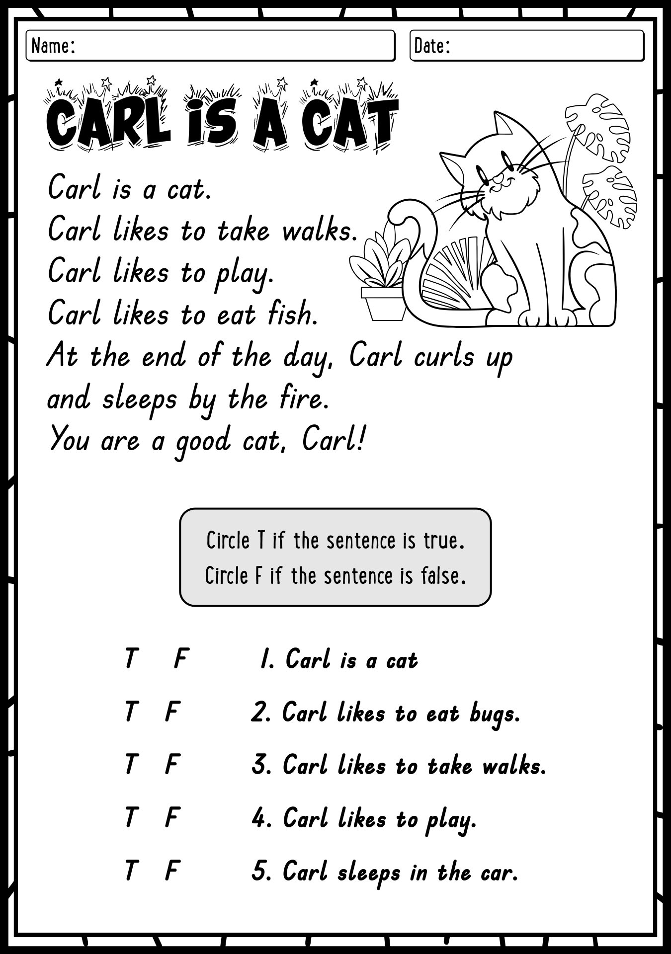 Reading Comprehension Printable Worksheet First Grade