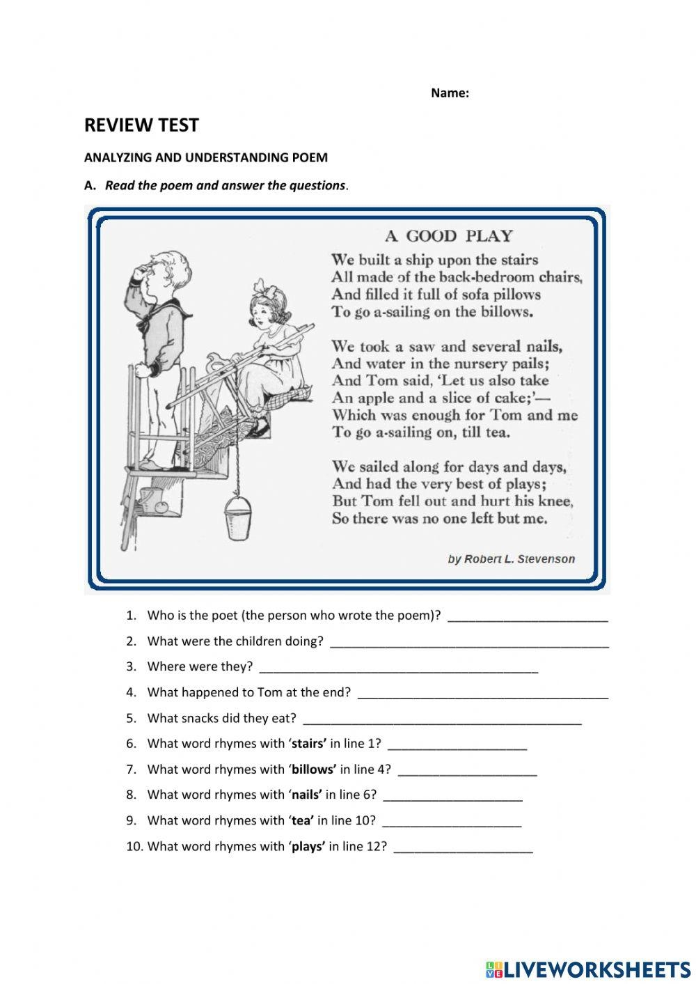 Poetry Reading Comprehension Worksheets WorksheetsGO