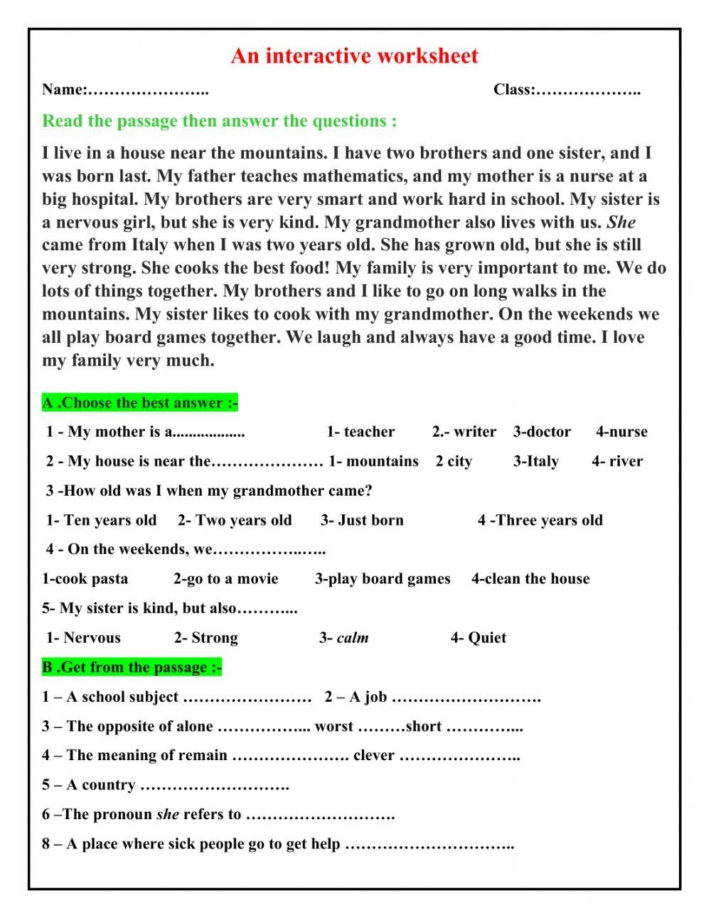 Reading Comprehension Worksheets Eighth Grade Reading Comprehension Worksheets
