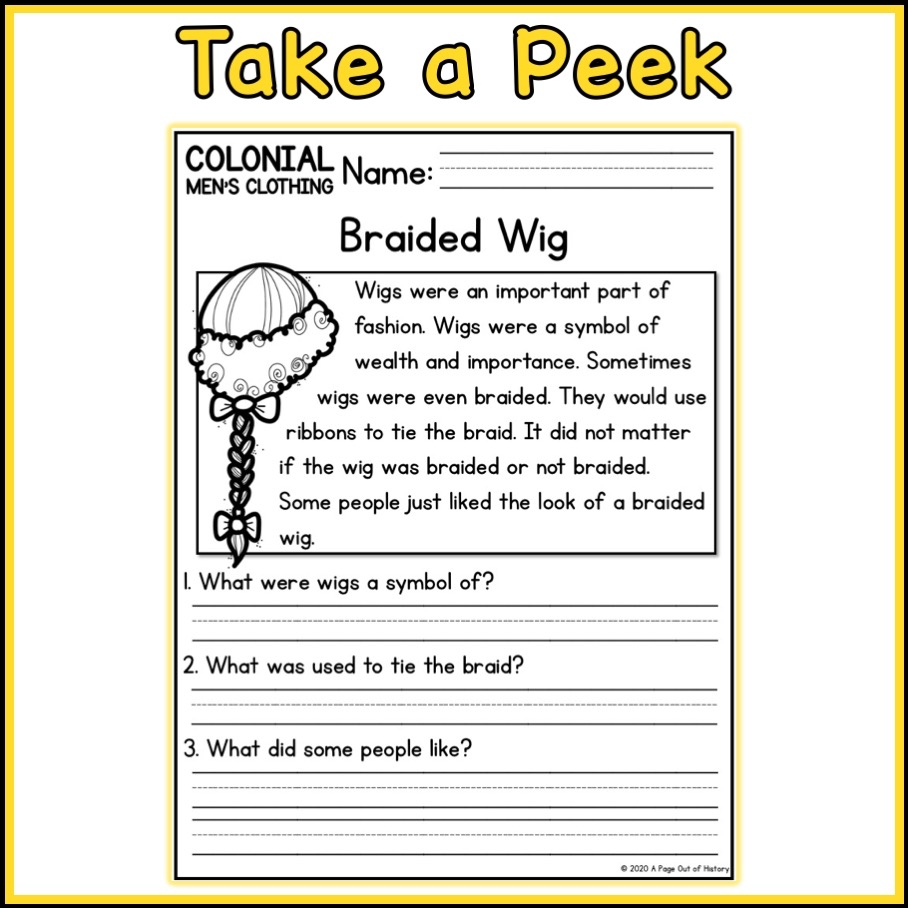 Colonial Men s Clothing Social Studies Reading Comprehension Passages K 2 Made By Teachers